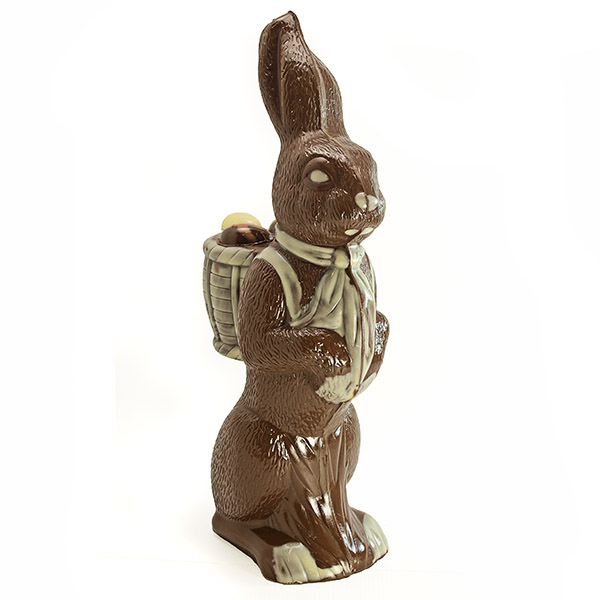 Startseite » Schokoladefiguren » Osterhasen & Co » BIO Schokolade Korbhase mit Meilenstein in Cellophan groß -G