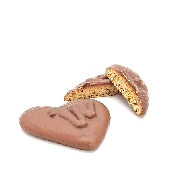 Feiner Honiglebkuchen mit viel gutem Honig (ca. 28%) in Herzform, mit Marillenmarmelade (Aprikosenkonfitüre) verziert und mit Milchschokolade überzogen.
