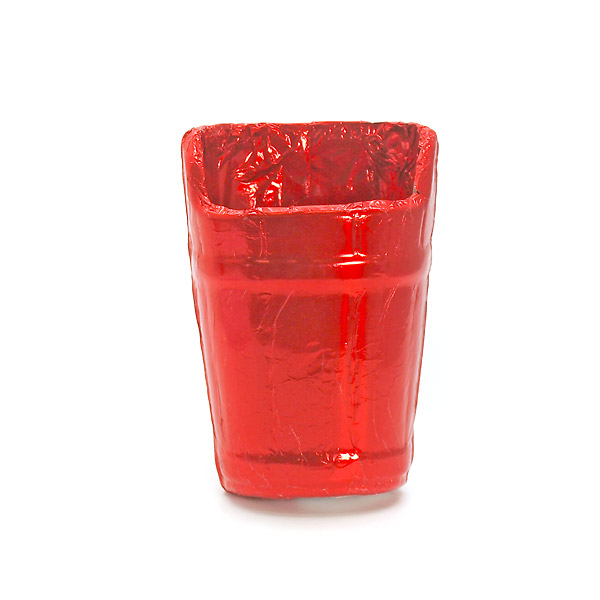 Beste Vollmilchschokolade mit mindestens 41% Kakaogehalt, handgeschöpft und handgewickelt in Stanniol.
