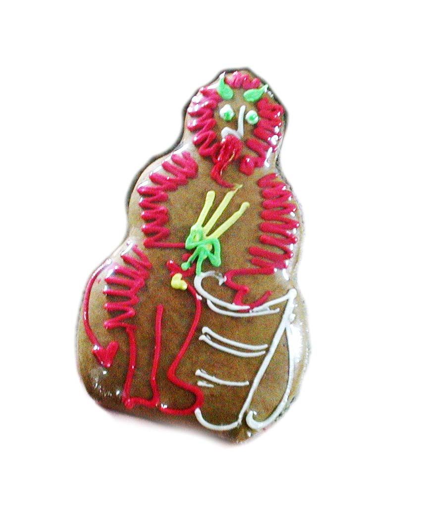 von Hand verziert, einzeln verpackt in Folie, mit Zutatenetikett auf der Rückseite.