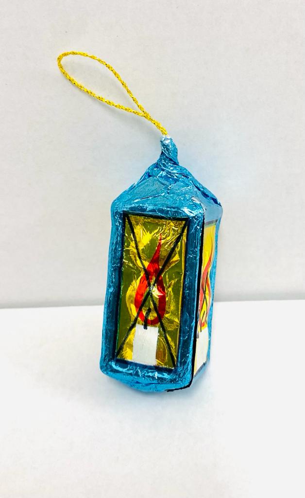 BIO Schokolade Laterndl -mit Lasche zum Aufhängen. Beste Vollmilchschokolade mit mindestens 41% Kakaogehalt,handgeschöpft und handgewickelt in Stanniol.