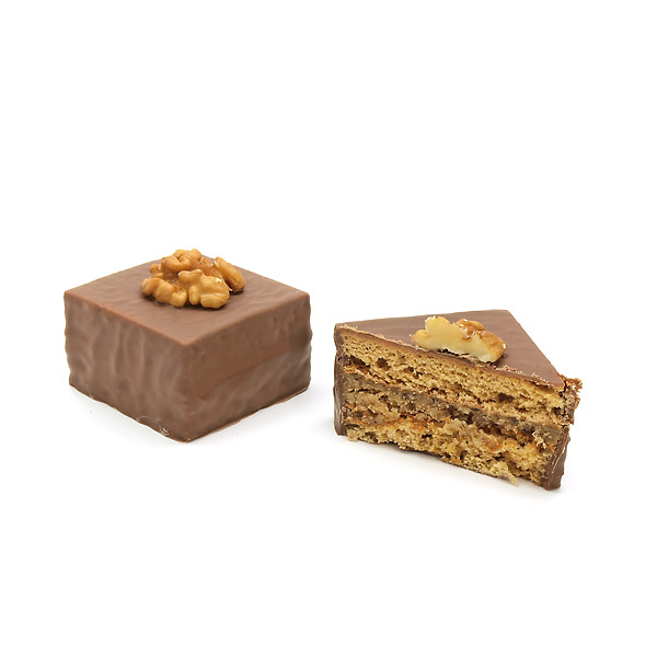 Feiner Honiglebkuchen mit viel gutem Honig (ca. 28%), mit Walnussmasse gefüllt und mit Edelbitterschokolade überzogen.