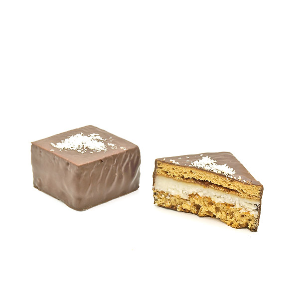 Feiner Honiglebkuchen mit viel gutem Honig (ca. 28%), mit Rum-Kokosmasse gefüllt und mit Edelbitterschokolade überzogen.